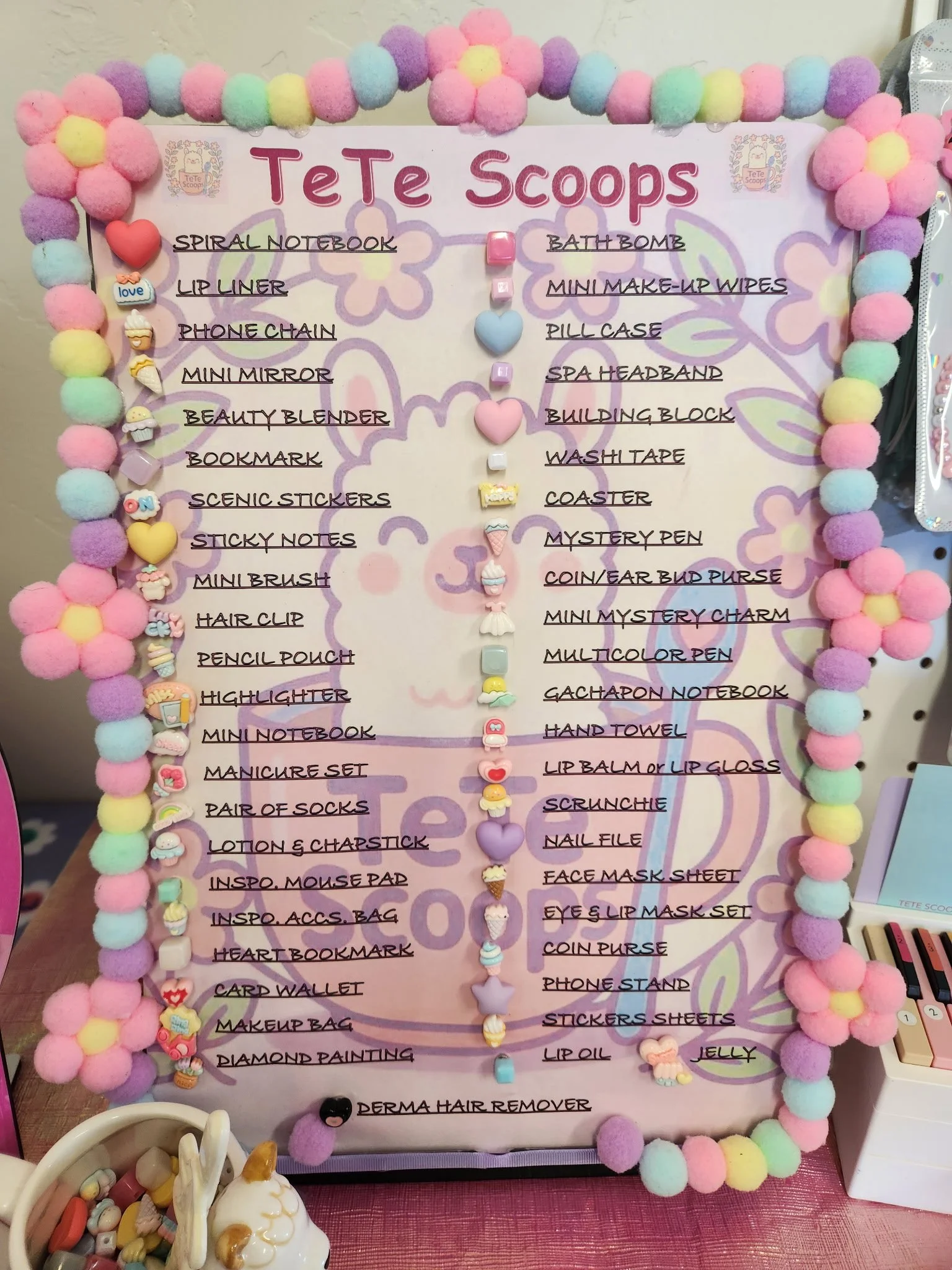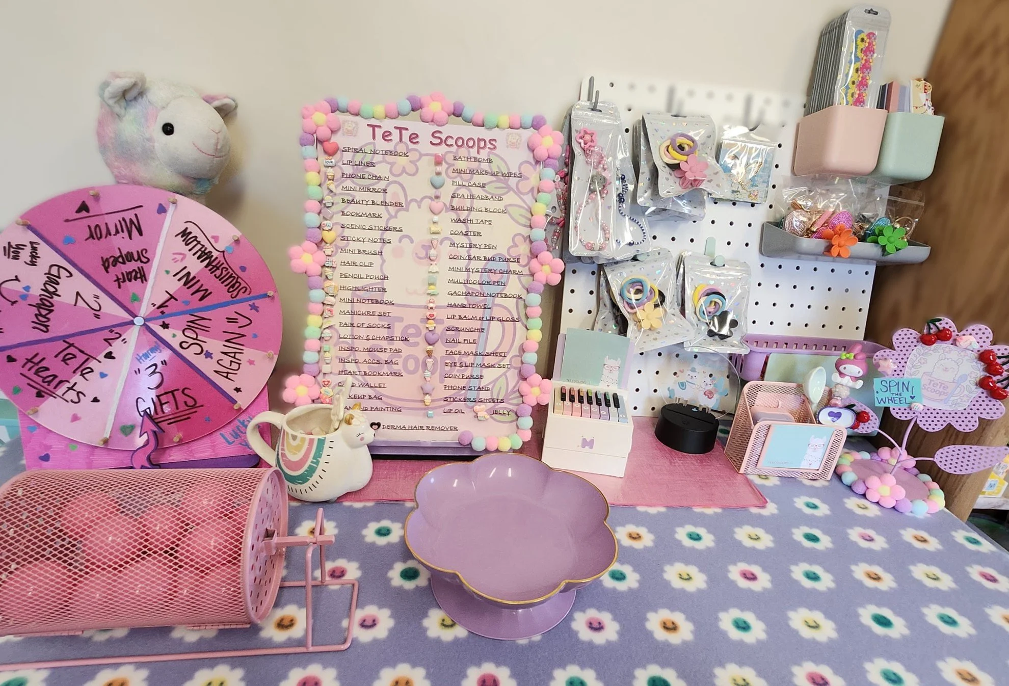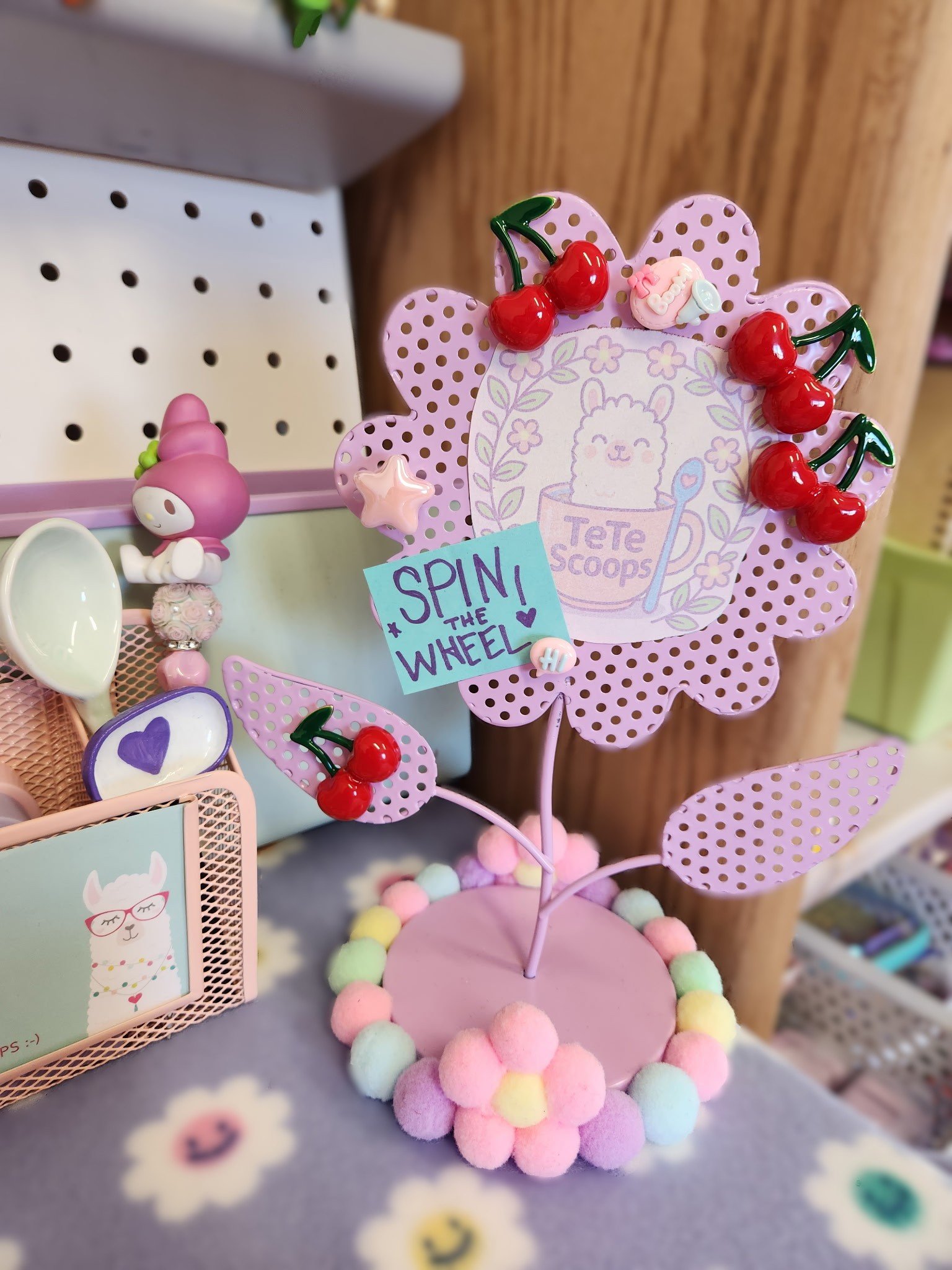 Wheel spin can either be purchased or won unexpectedly. There are 4 PINK stars inside our gift drum. Or you can also draw the other “HI” bead from our TeTe Scoop mug. GOOD LUCK!!
